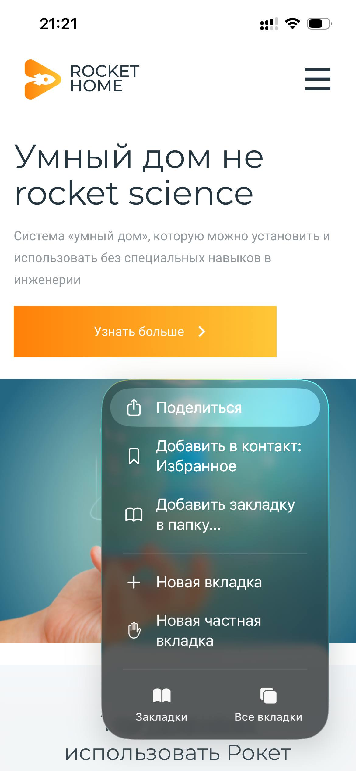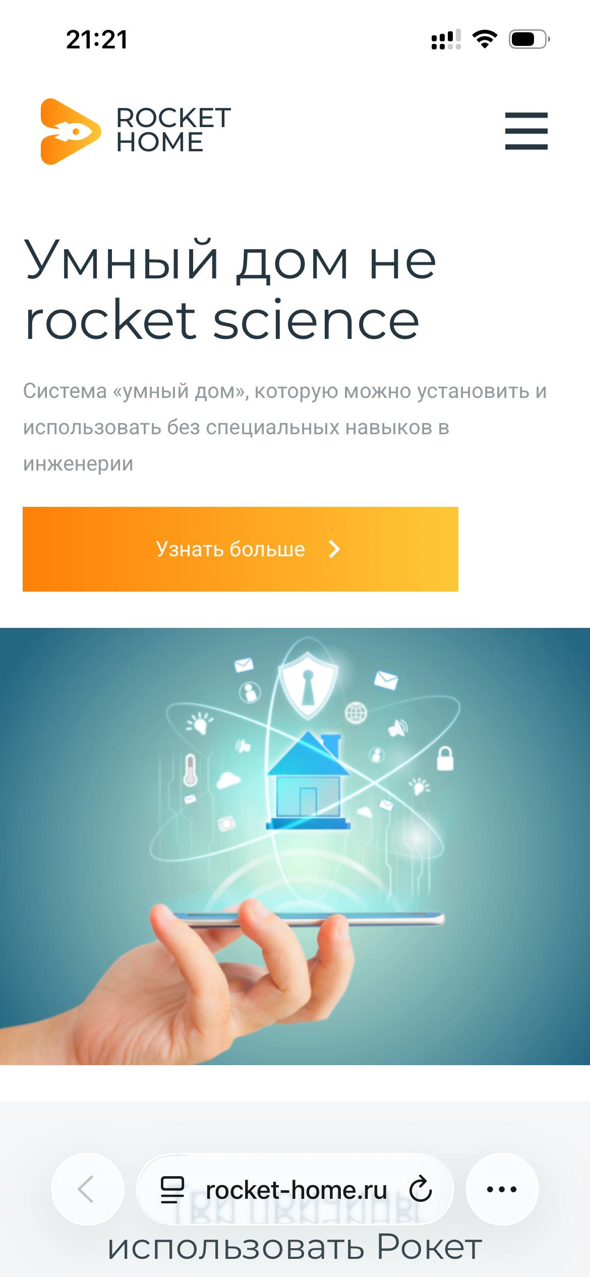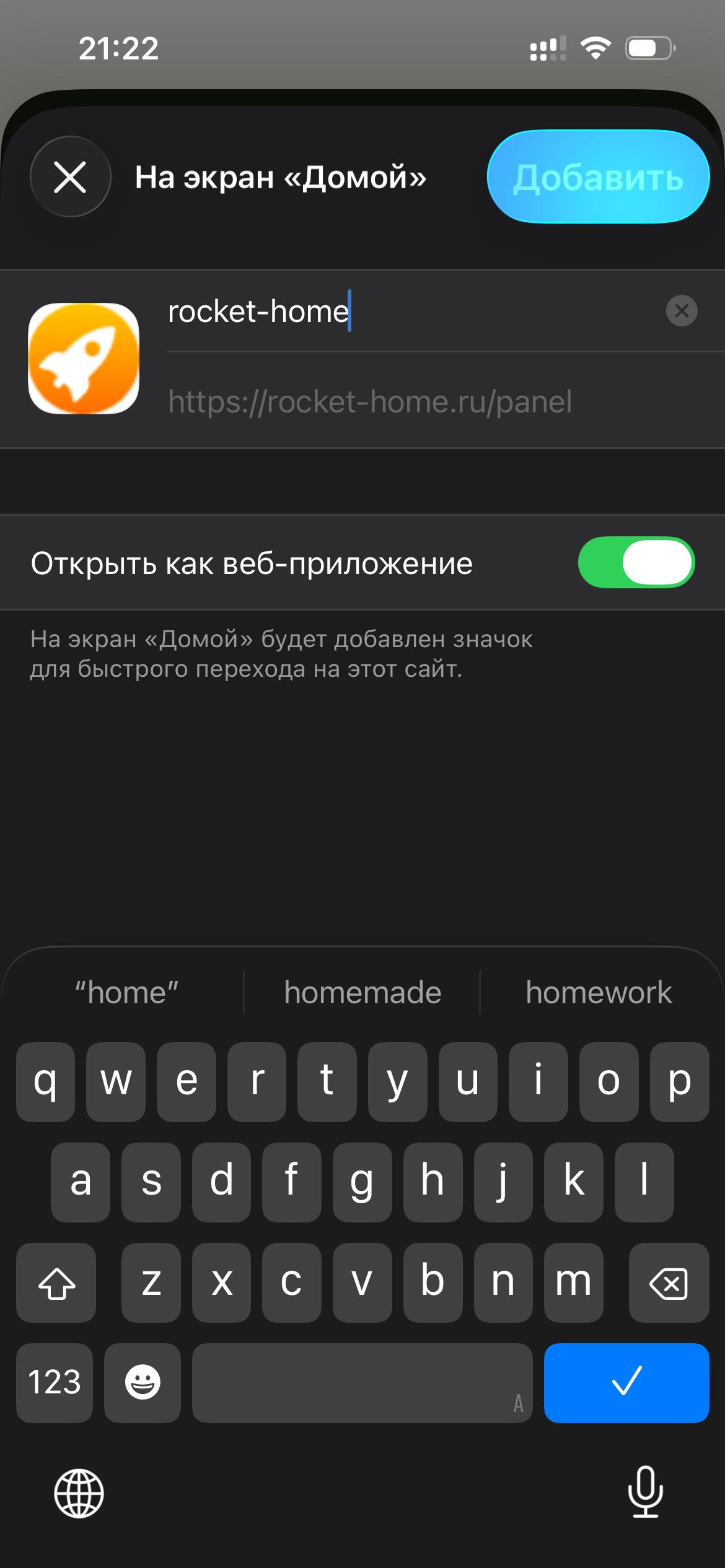 Эта страница дополняет инструкцию Приложение для управления умным домом на iOS и Android: Rocket Home PWA и показывает пошаговый процесс установки Rocket Home как PWA на iPhone (iOS).