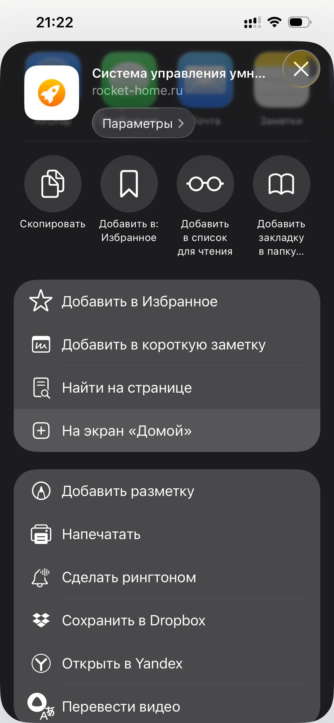 Скриншоты установки Rocket Home PWA на iOS¶